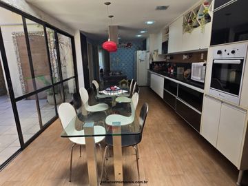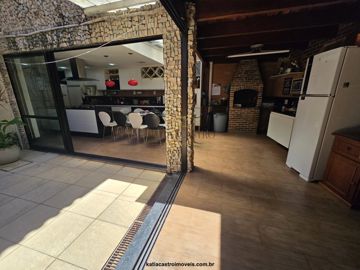 Duplex, com sala, charmoso lavabo, cozinha em espaço Gourmet integrada a churrasqueira e lounge,  3 quartos (sendo 1 suíte com closet e banheiro com hidromassagem + 2 quartos com banheiro social), lavanderia fechada, banheiro de empregada, vagas de garagem para 3 carros. Quintal com ducha.  Em anexo conta com sala e lareira e mais 1 suíte.